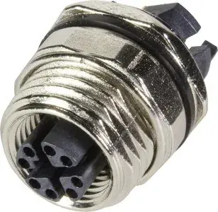 Leiterplattenadapter, gerade, inkl. Flanschdose, für Rückwandmontage, Reflowlötanschluss (THR), Bemessungsstrom: 0,5 A, Kontakte: 8, Kupferlegierung, Au über Ni steckseitig, Kodierung: X-Kodierung, Liquid-crystal polymer (LCP)