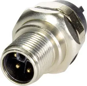 Leiterplattenadapter, gerade, inkl. Flanschdose, für Frontmontage, Reflowlötanschluss (THR), Bemessungsstrom: 16 A, Kontakte: 4, Kupferlegierung, Au über Ni steckseitig, Kodierung: L-Kodierung, Polyamid (PA), schwarz