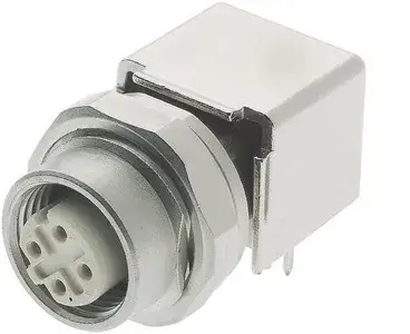 Leiterplattenadapter, gewinkelt, für Rückwandmontage, Reflowlötanschluss (THR), Bemessungsstrom: 4 A, Kontakte: 4, Kupferlegierung, Au über Ni steckseitig, Kodierung: D-Kodierung, Liquid-crystal polymer (LCP)