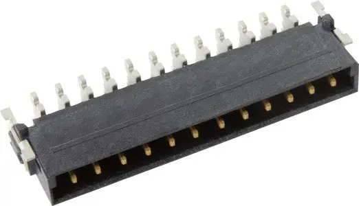 Hersteller:HartingBezeichnung:Messerleiste gerade ReflowlötanschlussTyp:15550122601333Kontaktausführung:sonstigePolzahl:12Rastermaß der Kontakte:2,54 mmRastermaß der Anschlüsse:2,54 mmWinkel Leiterplatte/Kontakt:0°/180° (horizontal)Bemessungsstrom In:18 ABemessungsspannung:180 VBemessungsstoßspannung:1,5 kVWerkstoff der Kontaktbeschichtung:ZinnAusführung des elektrischen Anschlusses:LötanschlussWerkstoff des Isolierkörpers:FlüssigkristallpolymerGehäusefarbe:sonstigeBrennbarkeitsklasse des Isolierstoffs nach UL 94:sonstigeBetriebstemperatur:-55..125 °CArt der Leiterplattenbefestigung:sonstige