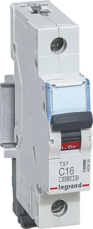 Legrand Leitungsschutzschalter TX3 nach EN 60898-1, VDE 0641-11, EN 60947-2, 1-polig, C-Charakteristik, Bemessungsstrom In 25 A, Bemessungsschaltvermögen Icn 6 kA nach EN 60898-1, Bemessungsspannung Un 230/400 VAC, Bemessungsfrequenz 50/60 Hz, Energiebegrenzungsklasse 3, Befestigung auf Hutprofilschiene EN 60715 durch eine rastende Schnellbefestigung, klare Information vorne auf jedem Gerät, eindeutige Schaltstellungsanzeige rot/grün am Schalthebel, mit Beschriftungsfenster, mit Untersteckschutz zum sicheren Einführen des Leiters in Fahrstuhlklemme, Anbau von Hilfsgeräten möglich. Leitungsschutzschalter mit C-Charakteristik sind für den Leitungsschutz bei Geräten mit hohen Einschaltströmen (z.B. Motoren und Transformatoren) vorgesehen.