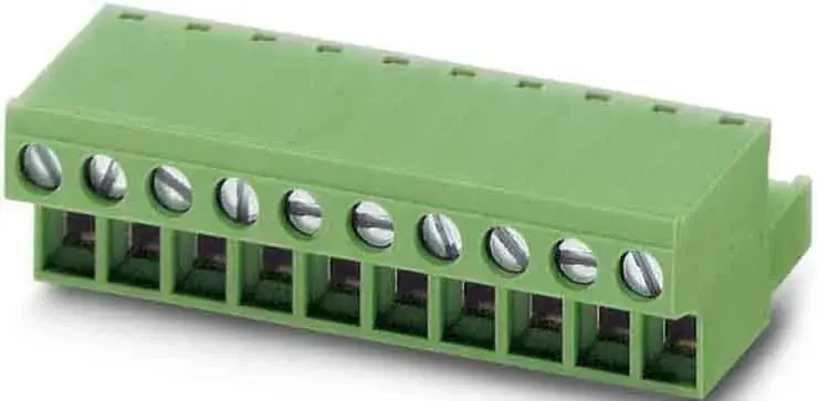 Leiterplattenstecker, Nennquerschnitt: 2,5 mm², Farbe: grün, Nennstrom: 12 A, Bemessungsspannung (III/2): 320 V, Kontaktoberfläche: Zinn, Kontaktart: Buchse, Anzahl der Potenziale: 9, Anzahl der Reihen: 1, Polzahl: 9, Anzahl der Anschlüsse: 9, Artikelfamilie: FRONT-MSTB 2,5/..-ST, Rastermaß: 5 mm, Anschlussart: Frontschraubanschluss, Schraubenangriffsform: L Längsschlitz, Anschlussrichtung Leiter/Platine: 0 °, Rasthaken: – Rasthaken, Stecksystem: COMBICON MSTB 2,5, Verriegelung: ohne, Befestigungsart: ohne, Verpackungsart: verpackt im Karton