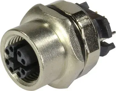 Leiterplattenadapter, gerade, inkl. Flanschdose, für Frontmontage, Reflowlötanschluss (THR), Bemessungsstrom: 0,5 A, Kontakte: 8, Kupferlegierung, Au über Ni steckseitig, Kodierung: X-Kodierung, Liquid-crystal polymer (LCP)