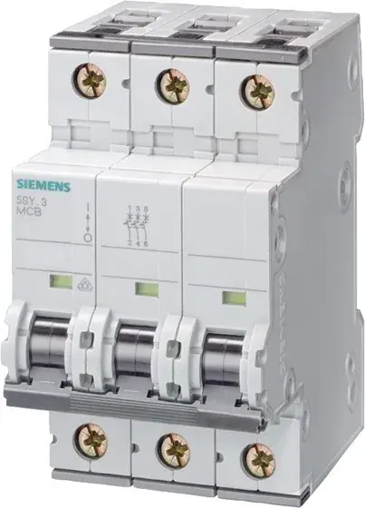Leitungsschutzschalter 400V 10kA, 3-polig, C, 8A, T=70mm Leitungsschutzschalter SENTRON 5SY für den sicheren Kurzschluss- und Überlastschutz für Wohngebäude, Zweckbau und besondere Industrieanwendungen. Werkzeuglose Montage und Demontage des Geräts mit Hilfe eines Zweifachschiebers. Beliebige Kombination von Leitern und Sammelschiene durch Doppelkammerklemme. Einfache Verdrahtung der Einspeisung durch die hinten liegende Sammelschiene. Die Leitungsschutzschalter 5SY sind erhältlich in 1-, 2-, 3-, 4- sowie in 1+N- und 3+N-poliger Ausführung. Das komplette Zubehörist einheitlich für alle Leitungsschutzschalter 5SY verwendbar. Einfach sicher mit den Schutzgeräten von SENTRON.