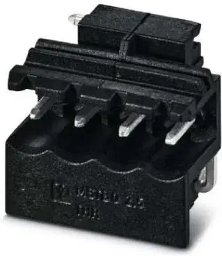 Leiterplatten-Grundleiste, Nennquerschnitt: 2,5 mm², Farbe: schwarz, Nennstrom: 16 A, Bemessungsspannung (III/2): 320 V, Kontaktart: Stift, Anzahl der Reihen: 1, Polzahl: 4, Artikelfamilie: MSTBO 2,5/..-G1L-THR, Rastermaß: 5 mm, Montage: THR-Löten, Pin-Layout: Lineares Pinning, Pinlänge [P]: 2,5 mm, Anzahl der Lötpins pro Potenzial: 1, Stecksystem: COMBICON MSTB 2,5, Verriegelung: ohne, Verpackungsart: Gurt in 44 mm Breite, feste Kodierung des Pols: 3, Artikel mit seitlichem Pinabgang links